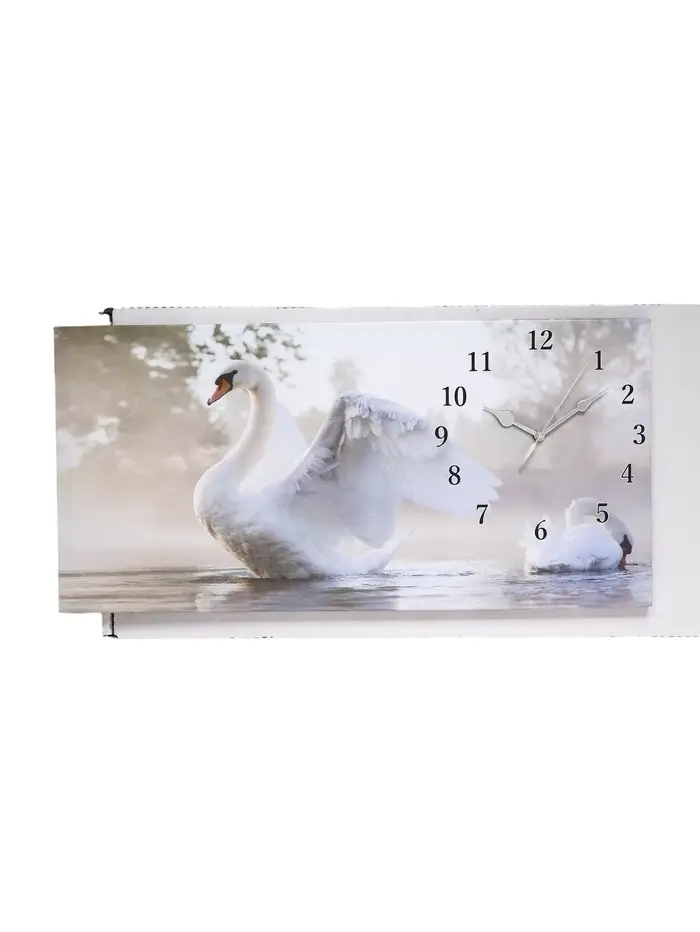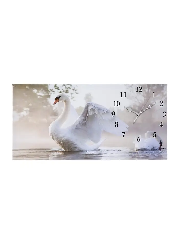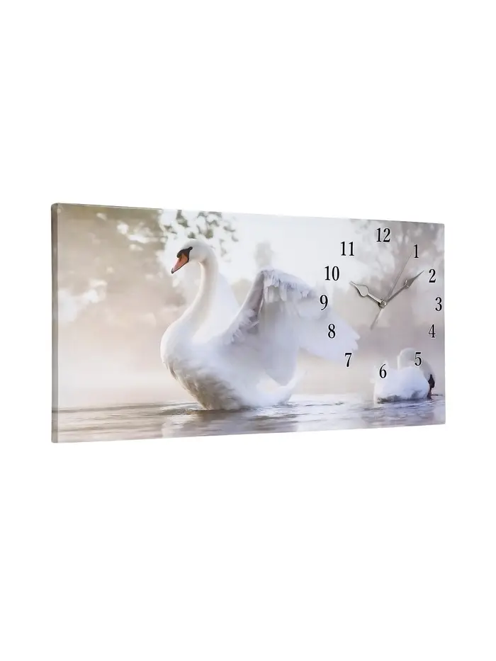 Часы-картина настенные, на холсте, интерьерные, бесшумные «Белый лебедь», 40×76 см