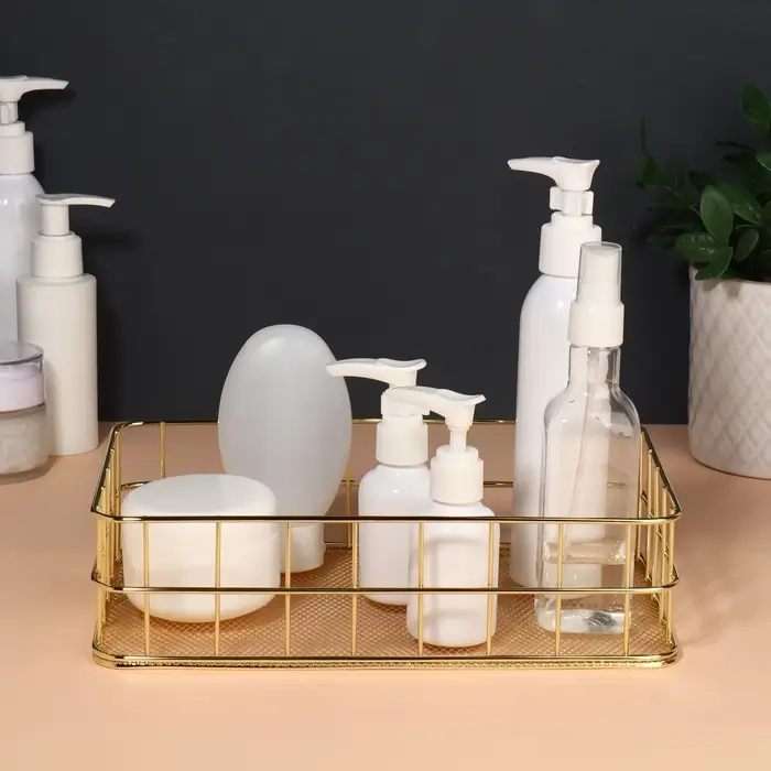 Вдохните изящество и стиль в свою повседневную рутину с органайзером «РАФАЭЛЬ»! Этот элегантный аксессуар станет настоящей жемчужиной на вашем туалетном столике, украшая его изысканным золотистым оттенком. Благодаря металлическому корпусу, органайзер сочетает в себе прочность и лёгкость, обеспечивая надёжное хранение всех ваших косметических средств и домашних мелочей.