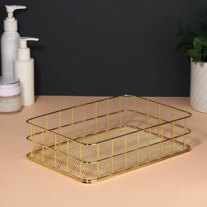 - Элегантный дизайн: золотистый цвет органайзера гармонично вписывается в любой интерьер, добавляя нотку роскоши и стиля.