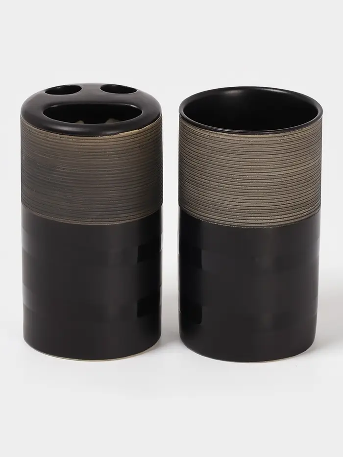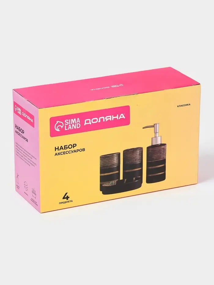 Аксессуары для ванной Доляна «Классика», 4 предмета: дозатор 300 мл, мыльница, 2 стакана, чёрные