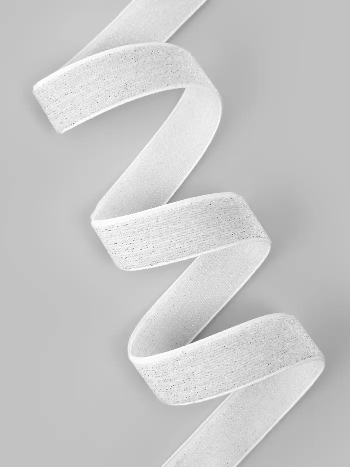 Эта широкая бархатная лента с серебряным люрексом создаёт выразительные праздничные акценты. Сочетание мягкого бархата и мерцающих нитей образует переливающуюся поверхность для нарядного оформления подарков и декора.