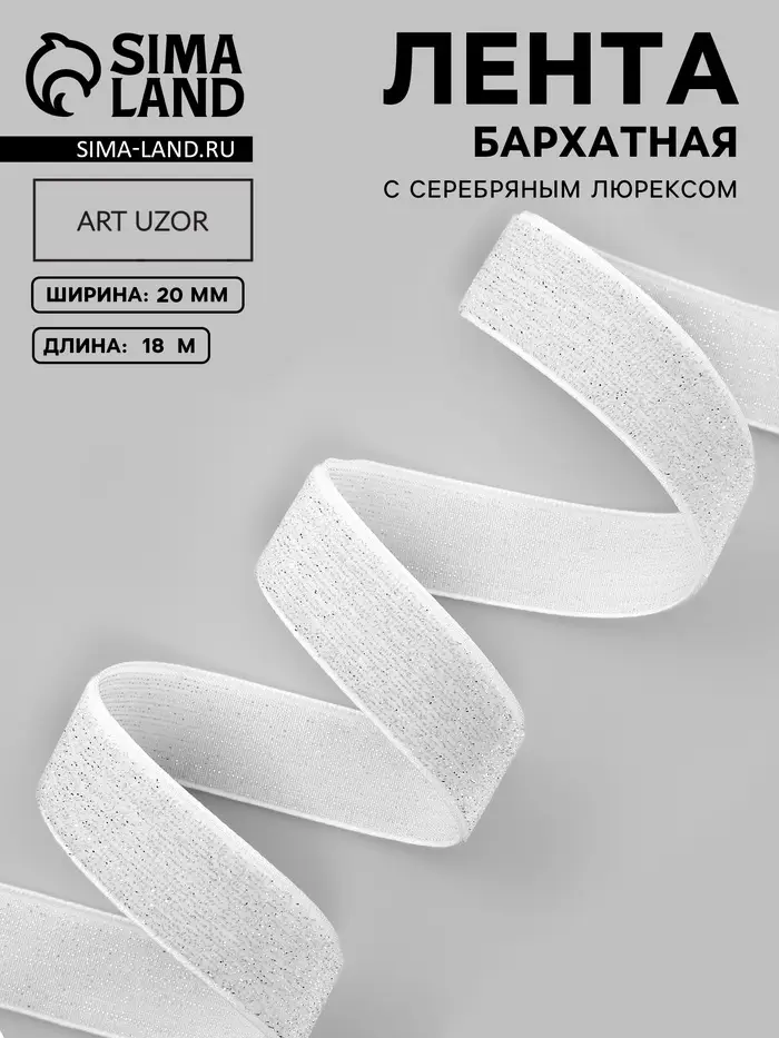 Лента бархатная, с серебряным люрексом, 20 мм, 18±1 м, белая №01
