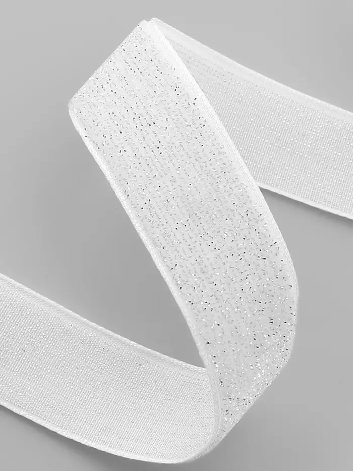 Лента подходит для упаковки новогодних подарков, создания декоративных элементов для интерьера, оформления свадебных аксессуаров и украшения праздничного стола. Ширина и мерцающий эффект помогают создавать заметные акценты в различных проектах.