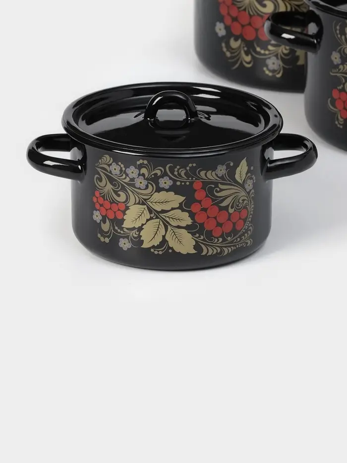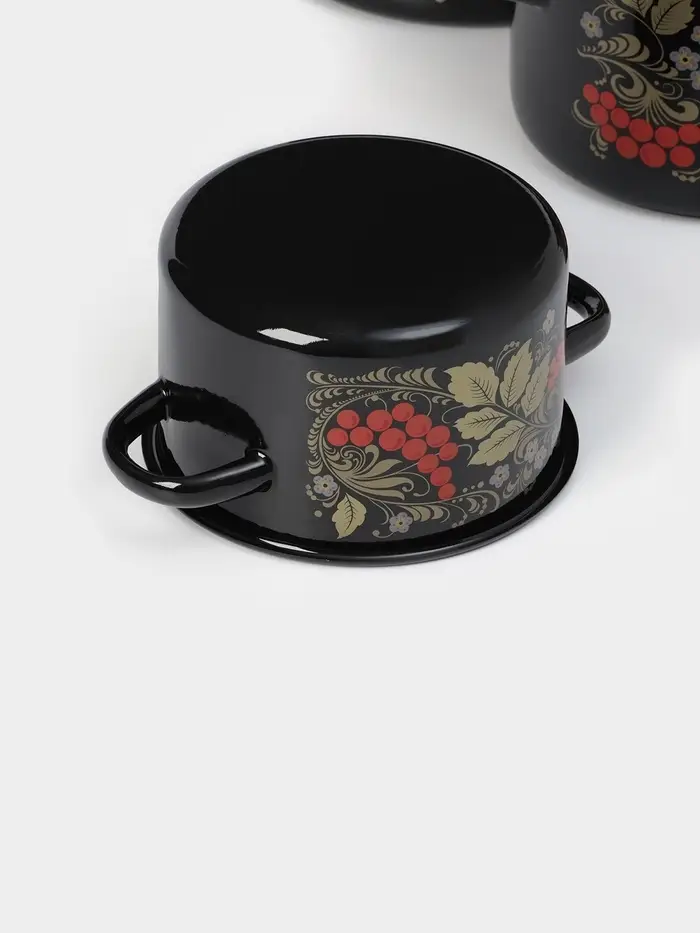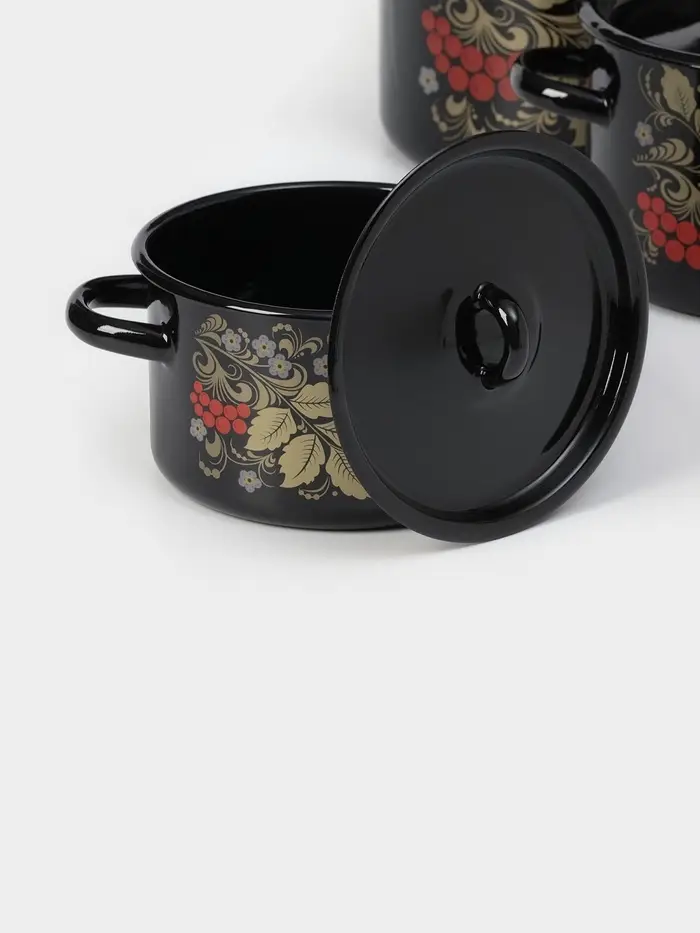 Набор кастрюль эмалированных «Рябина», 3 предмета: 1.5 л, 2.9 л, 4.5 л, чёрный