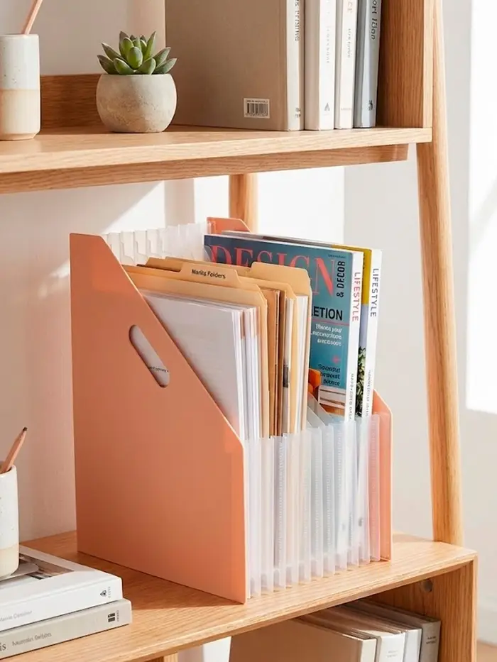 Использование вертикальной подставки для документов способствует улучшению рабочего процесса, так как упорядочивание и лёгкость доступа к материалам стимулируют продуктивность. Этот аксессуар — незаменимый спутник дня, помогающий держать всё под контролем и обеспечивая порядок в бумагах.