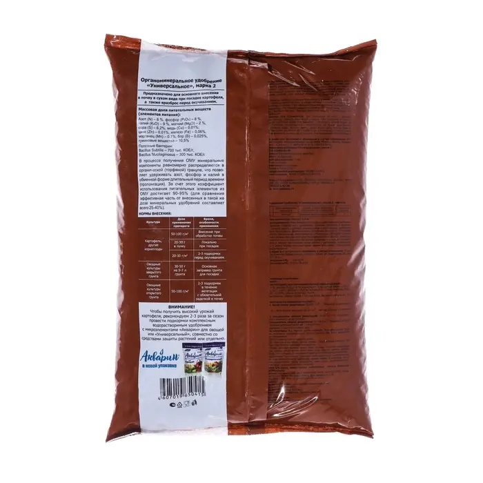«Картофельное» — это комплексное гранулированное удобрение на основе низинного торфа, содержащего гуминовые соединения, макро- и микроэлементы. Оно предназначено для основного внесения в почву и подходит для питания картофеля и других овощных культур. Средство представляет собой тёмно-серые гранулы диаметром 1–6 мм.