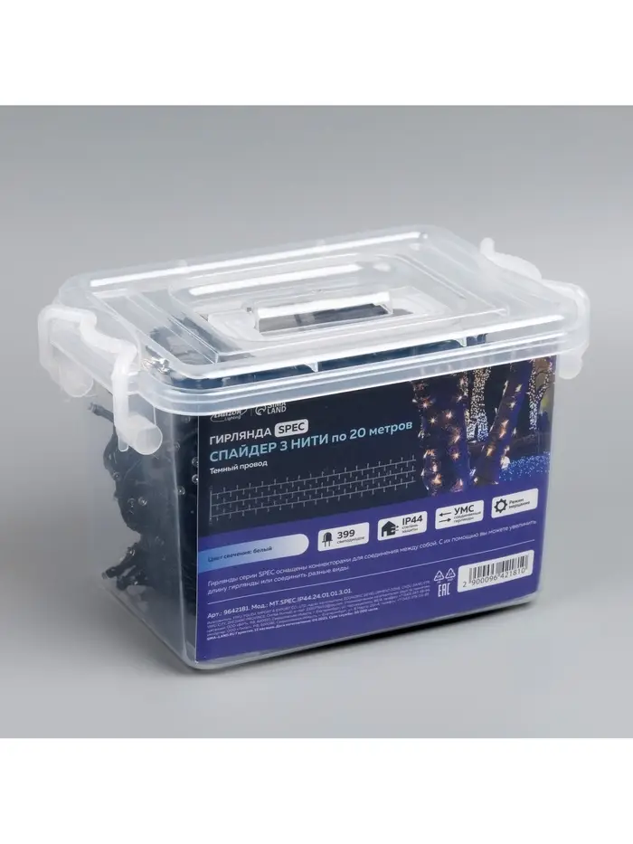 Гирлянда «Клип-лайт» 3 нити по 20 м, IP44, УМС, тёмная нить, 399 LED, свечение белое, мерцание, 24 В