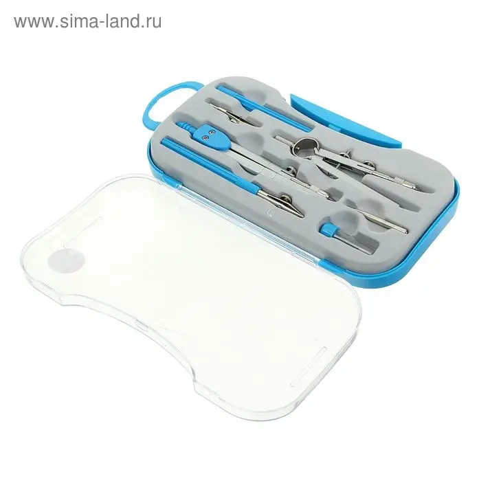 Готовальня Calligrata, 6 предметов (циркуль 120 мм, 2 удлинителя, грифель, 2 рейсфедера, центрик), в пластиковом пенале