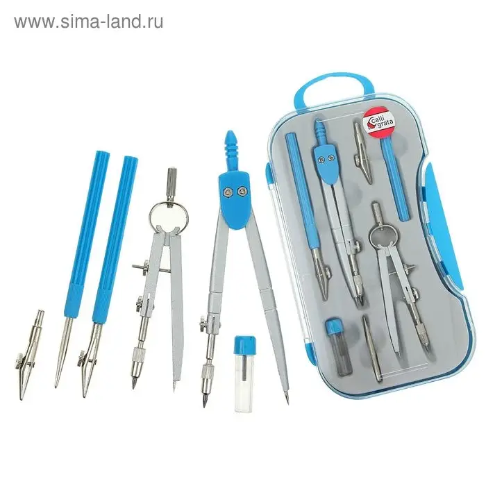 Готовальня Calligrata, 9 предметов (3 циркуля: 120 мм, 120 мм, 95 мм, 2 рейсфедера, 3 удлинителя, грифель, центрик), в пластиковом пенале