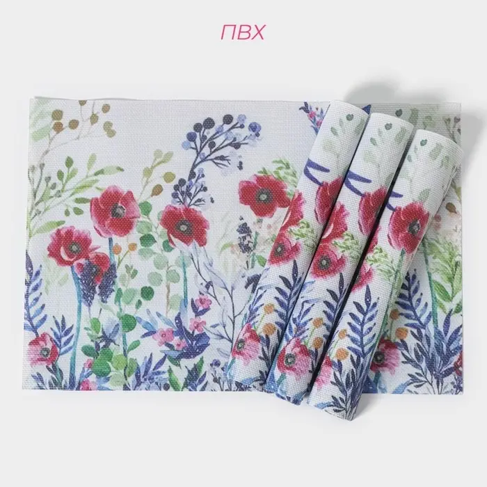 С размером 30х45 см и прямоугольной формой, салфетки идеально вписываются в любой интерьер, а разнообразие в цветах и растительном орнаменте позволяет легко сочетать их с различным кухонным текстилем и посудой. Изготовленные из прочного ПВХ, эти салфетки не только стильные, но и практичные — их легко чистить и они долго служат, не теряя своего привлекательного вида.