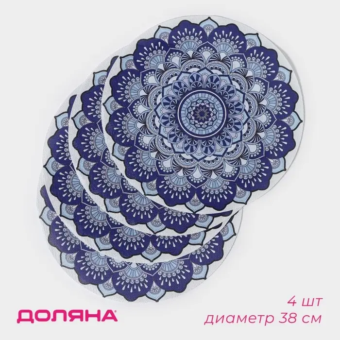 Салфетки сервировочные на стол Доляна «Силия», d=38 см, 4 шт., синие