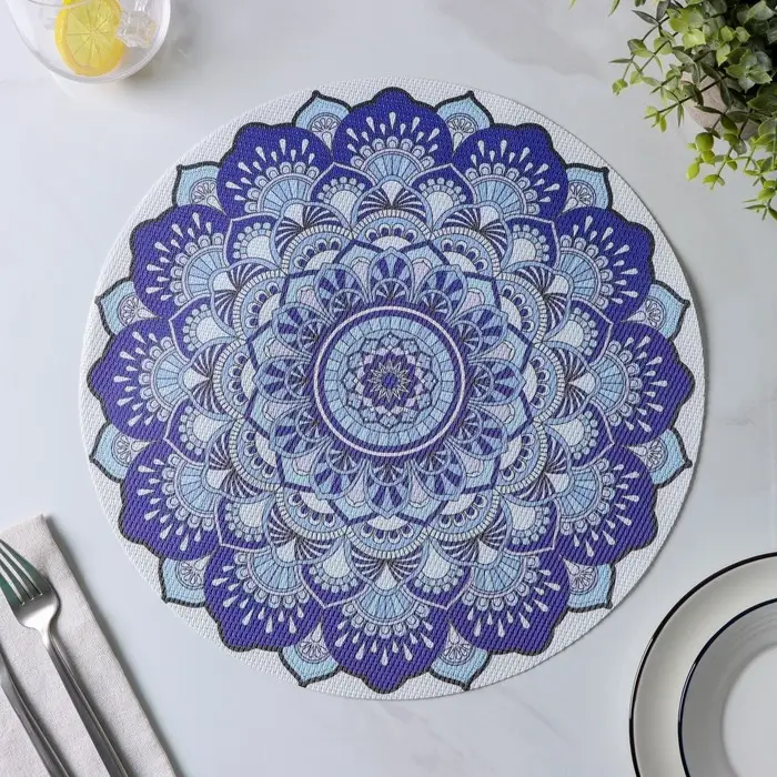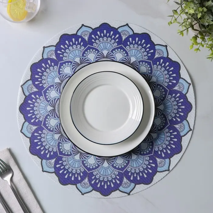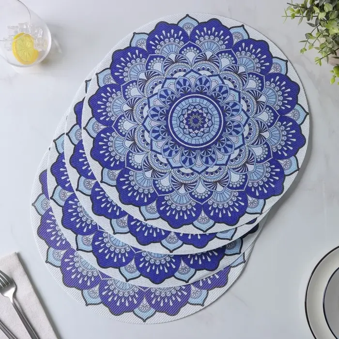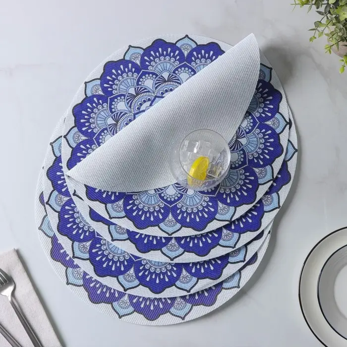Изготовленные из высококачественного ПВХ, салфетки гарантируют долговечность и легкость в уходе. В наборе из 4 штук вы всегда будете готовы к любому застолью — от уютных семейных ужинов до праздничных мероприятий. Яркий синий цвет в сочетании с оригинальными узорами добавляет элегантности и делает сервировку более живой и запоминающейся.