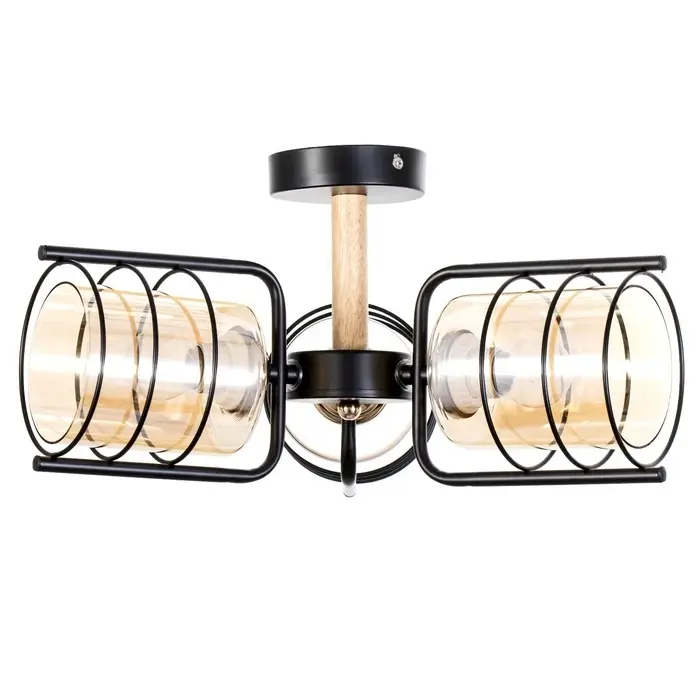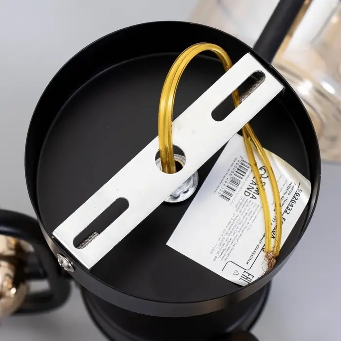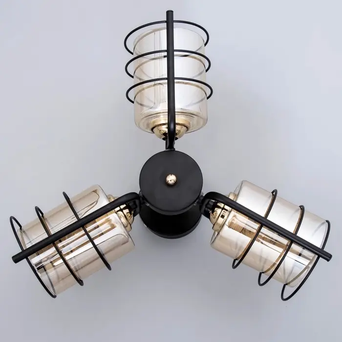 - Геометричный дизайн со штанговым креплением: Чёрное металлическое основание и тонированные стеклянные плафоны создают строгий современный образ. Квадратная форма (43×43 см) органично вписывается в геометрию современных помещений.