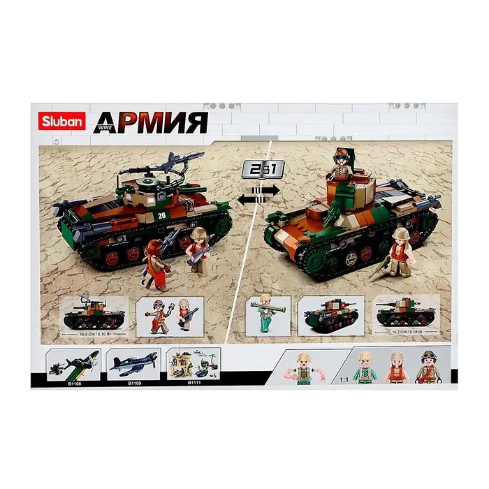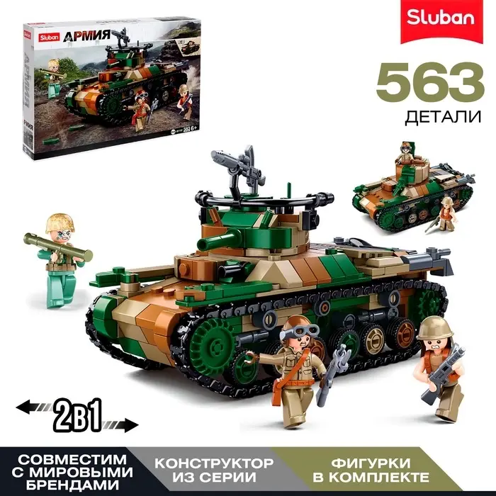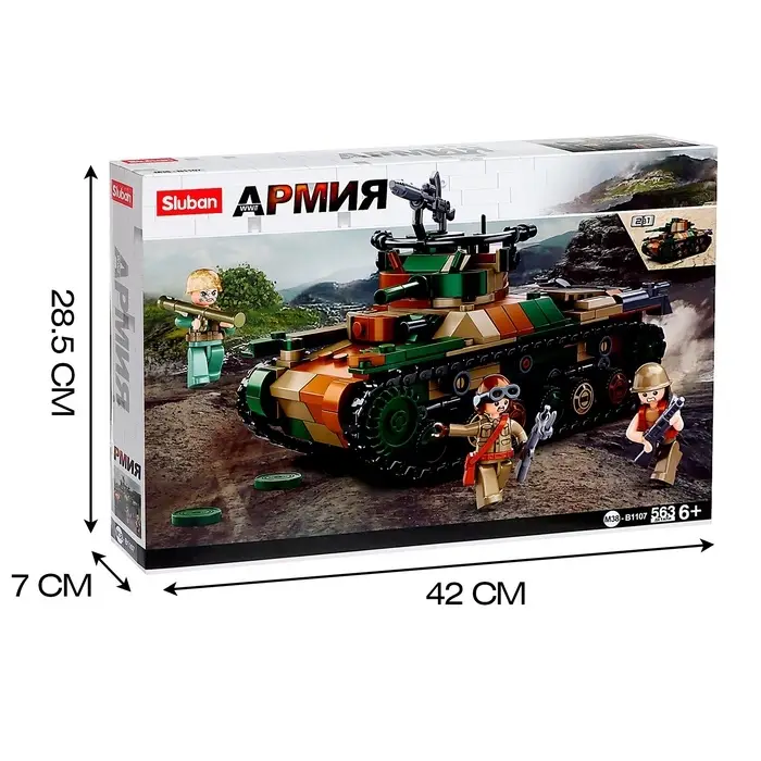 Конструктор Армия Sluban «Танк», 2 варианта сборки, 563 детали