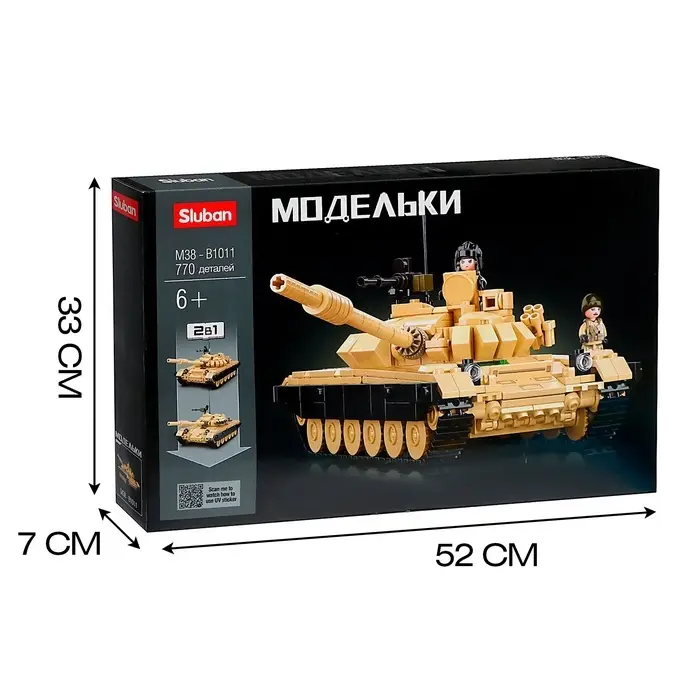Конструктор Sluban «Модельки. Боевой танк», 2 варианта сборки, 770 деталей