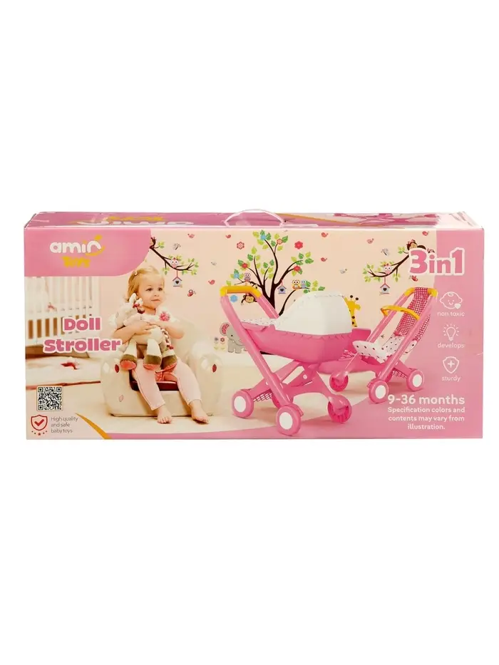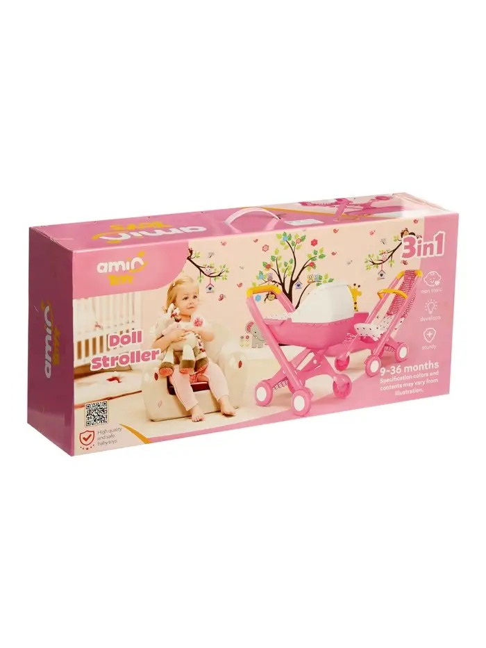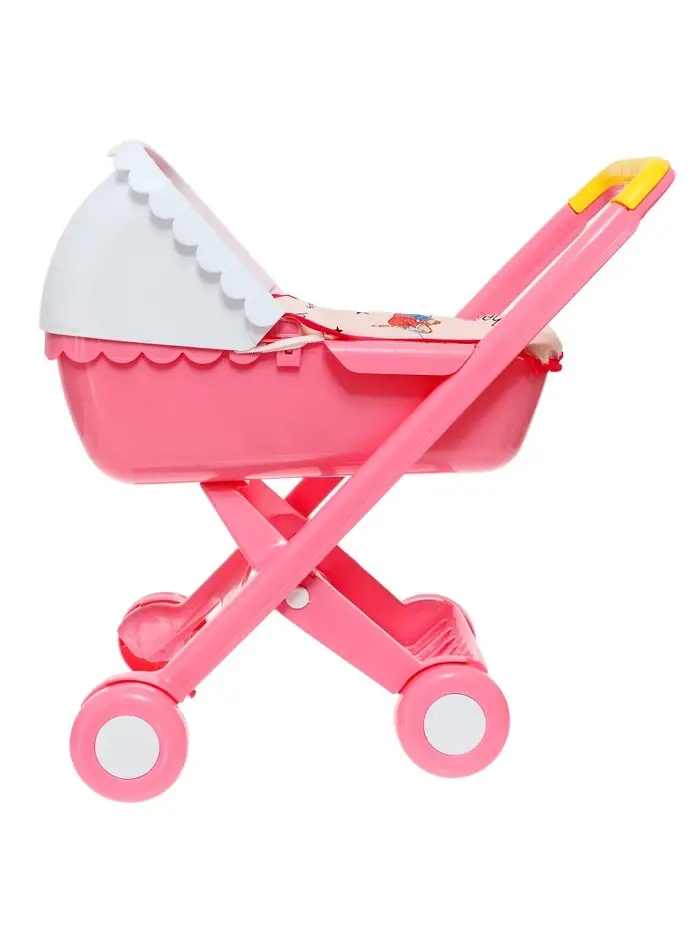 Коляска компактная, легко катится и не перегружает ребёнка по весу. Корпус выполнен из качественного пластика, конструкция рассчитана на ежедневные игры и простое использование.