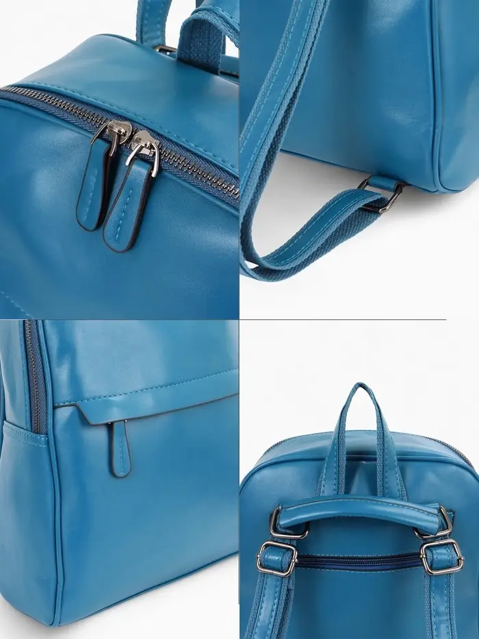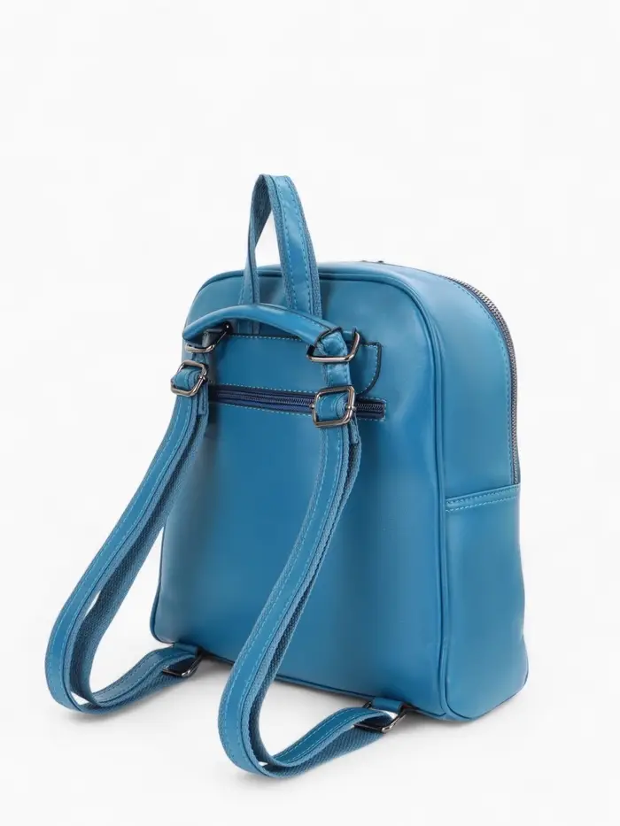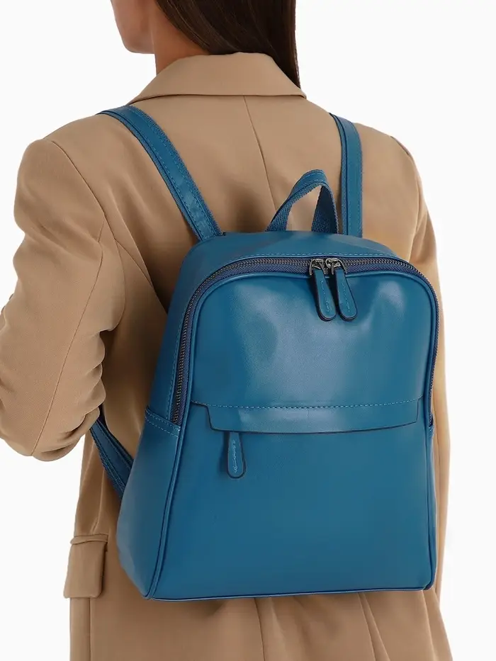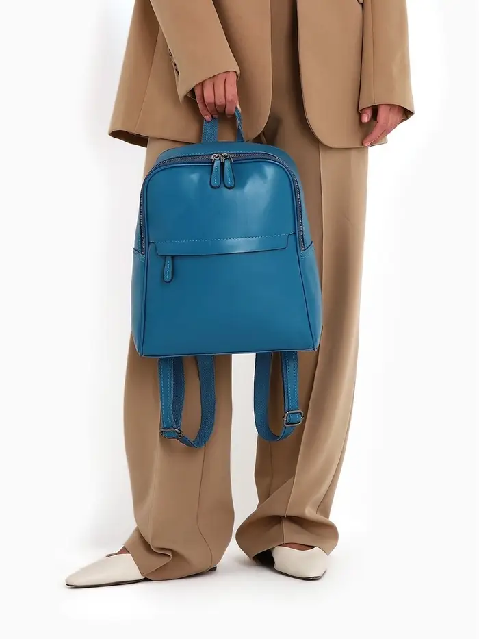 Синий рюкзак-сумка создает свежий акцент в вашем повседневном гардеробе. Этот универсальный аксессуар подходит женщинам и девушкам, которые ценят практичность и стиль в городской среде. Насыщенный оттенок синего сочетается с джинсами, летними платьями и деловым костюмом, сохраняя функциональность на весь день.
