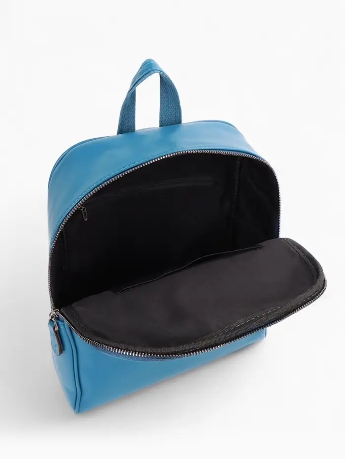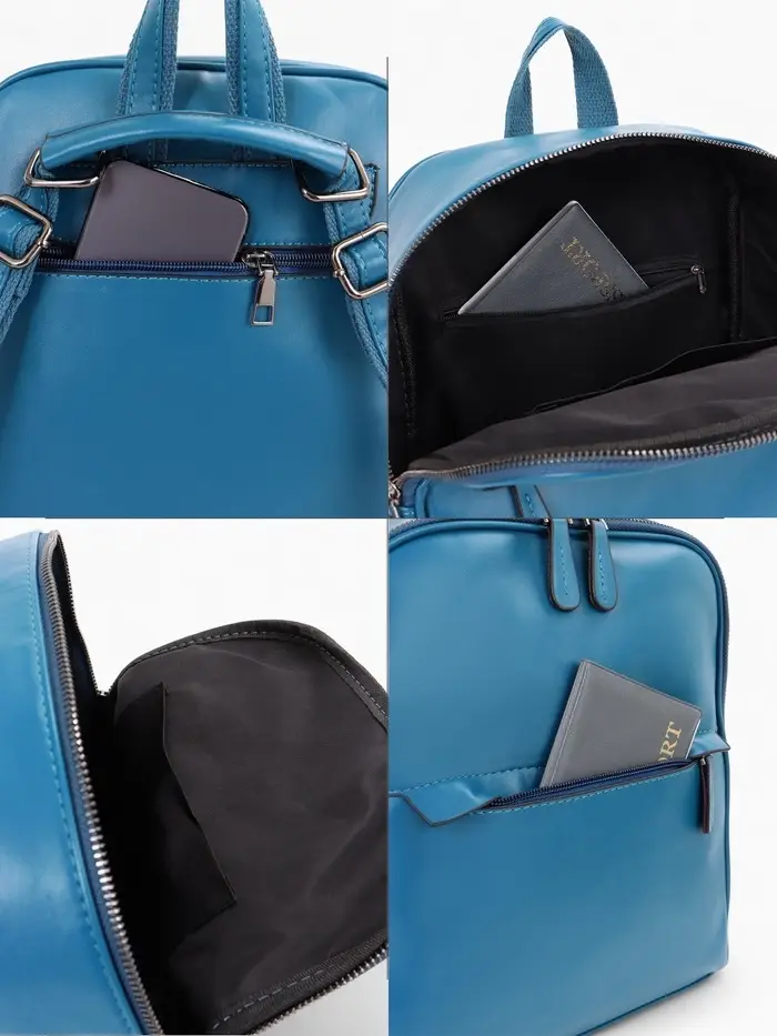 Мягкая спинка с двумя лямками повторяет изгибы тела, снижая нагрузку на плечи при длительной носке. Внутренние карманы-органайзеры помогают быстро находить телефон и мелкие вещи. Основное отделение с молнией вмещает планшет, косметику и документы, сохраняя компактную форму. Объем подходит для ежедневных нужд без лишнего веса.