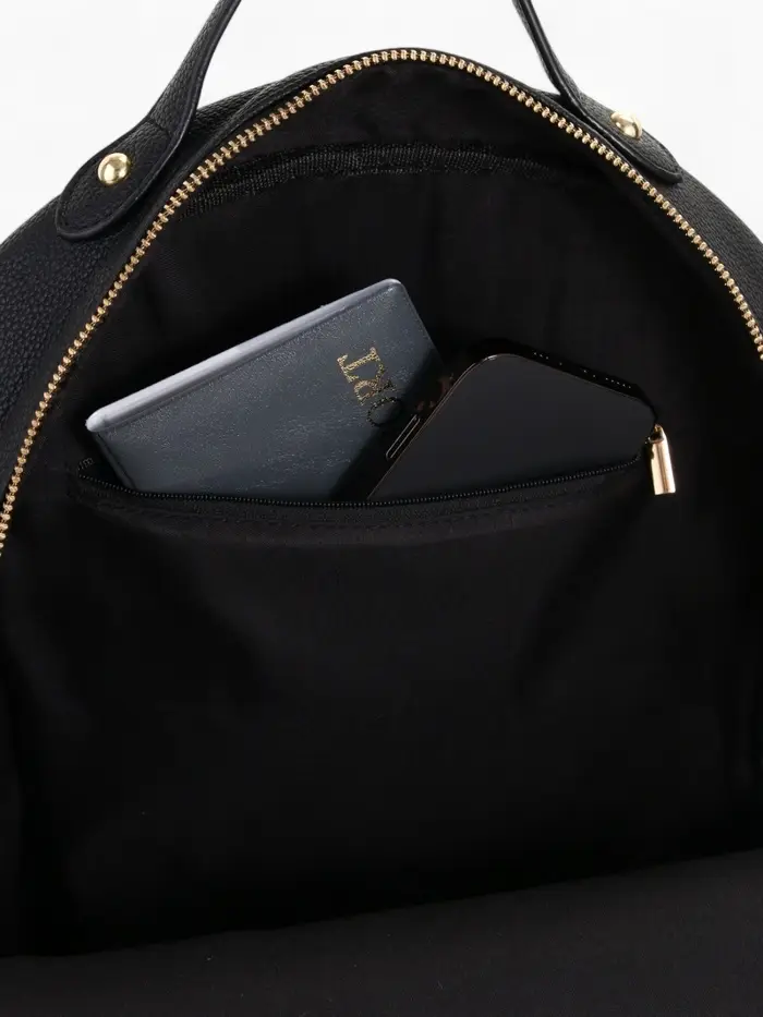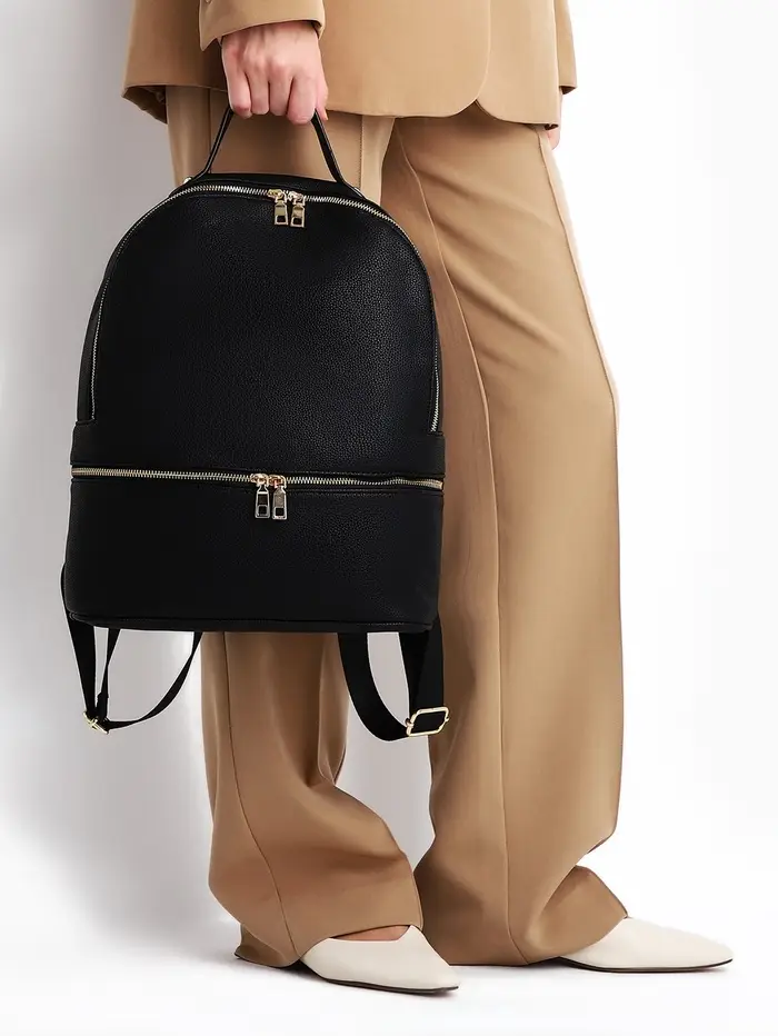 Этот компактный рюкзак становится универсальным спутником в вашей повседневной жизни. Классический чёрный цвет сочетается с разными стилями, а продуманная конструкция обеспечивает комфорт при ежедневном использовании. Мягкая спинка и регулируемые лямки бережно распределяют нагрузку, не создавая дискомфорта даже при полной загрузке.