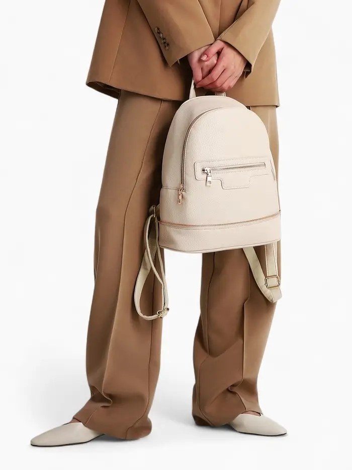 Этот компактный рюкзак становится вашим спутником в городских передвижениях. Нежный молочный оттенок создаёт мягкое настроение, а продуманная конструкция обеспечивает комфорт при ежедневном использовании. Мягкая спинка и регулируемые лямки бережно распределяют нагрузку, сохраняя удобство даже при полной загрузке.
