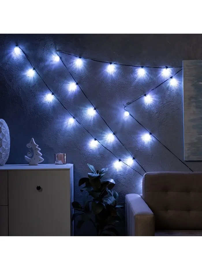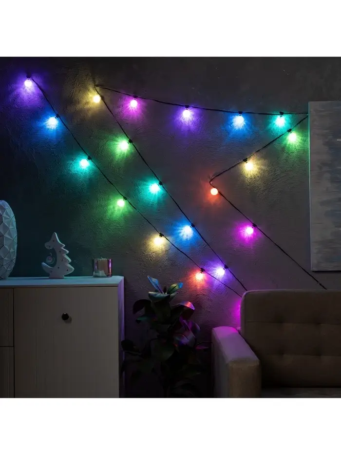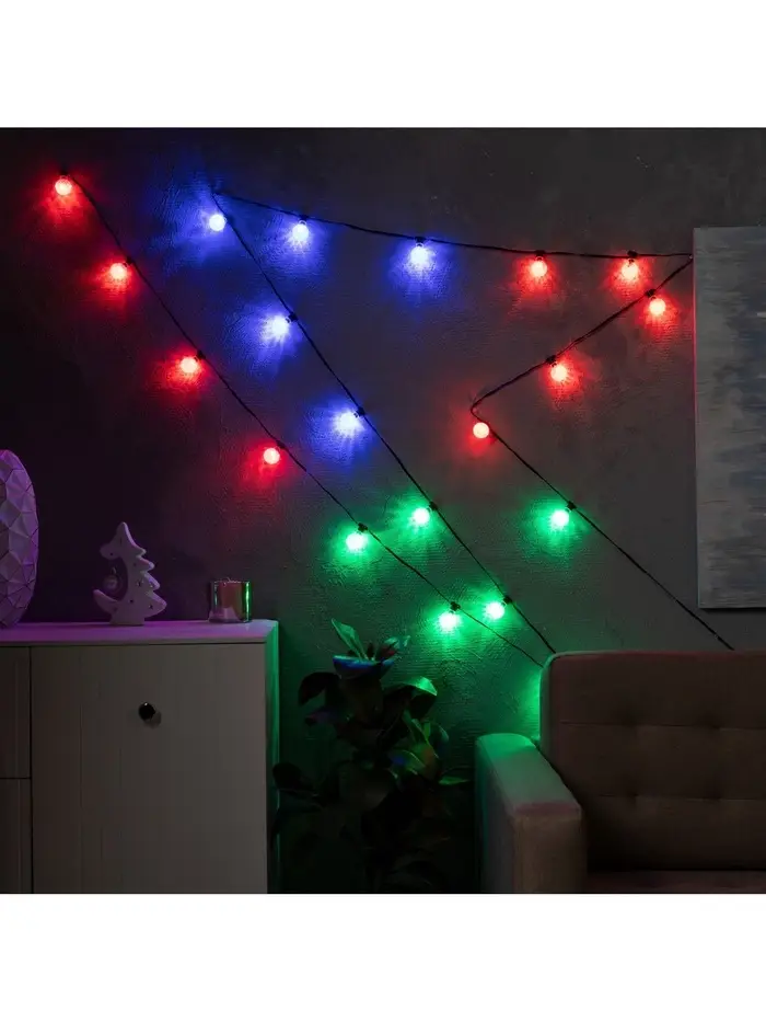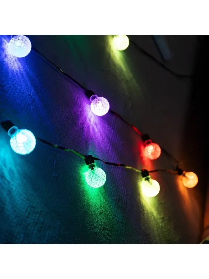 Умная гирлянда «Нить» 5 м, роса с насадками «Шарики», IP20, черный провод, 100 LED, пульт ДУ, приложение, свечение RGB, USB