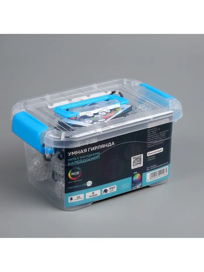 Умная гирлянда «Нить» 6 м с насадками «Калейдоскоп», IP20, тёмная нить, 20 LED, свечение RGB, USB