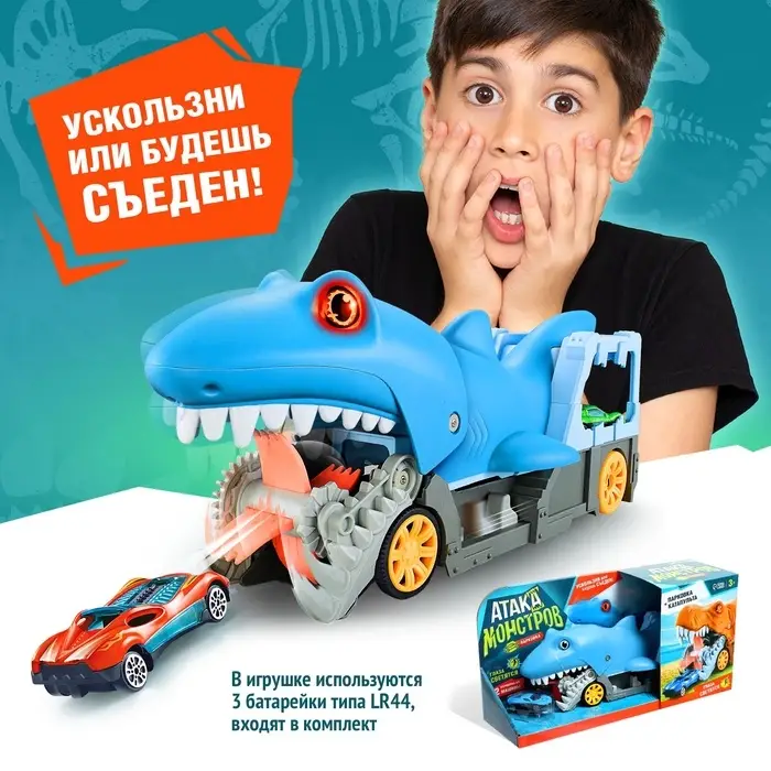 Парковка-автотрек «Атака монстров. Акула» рекомендована для детей от 3 лет.