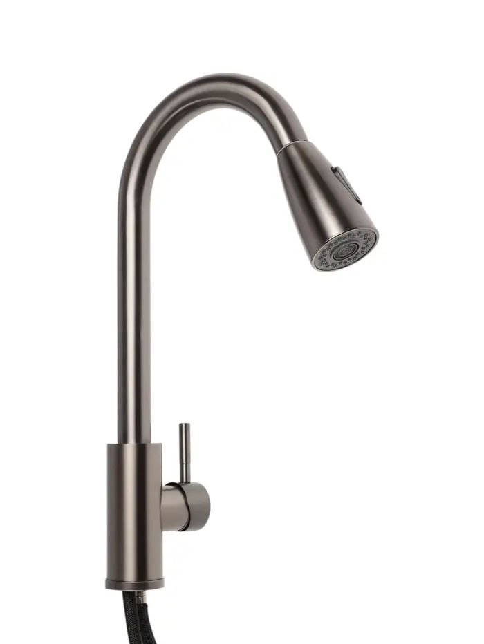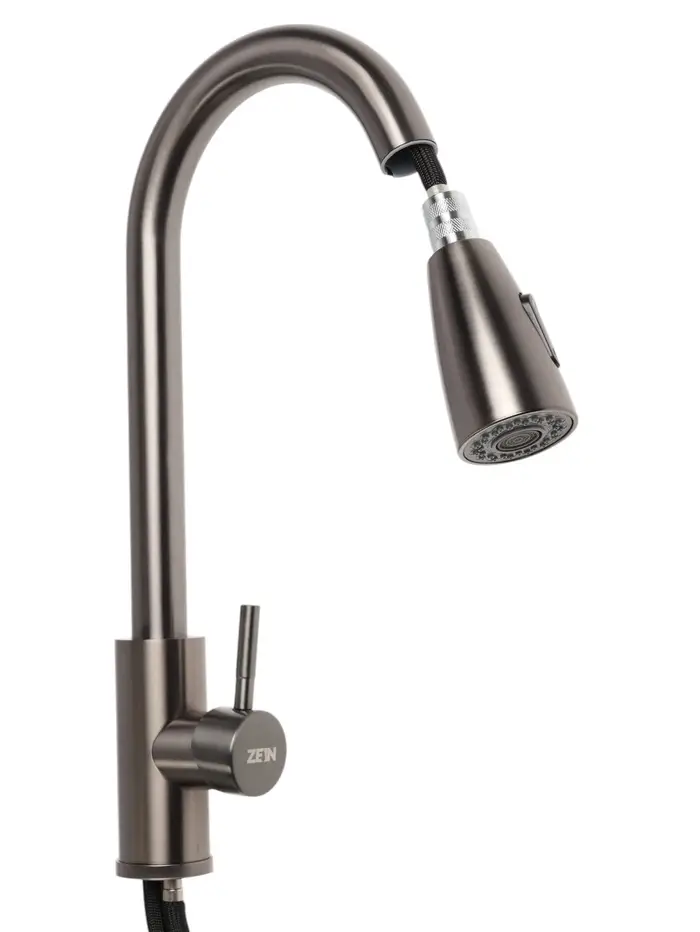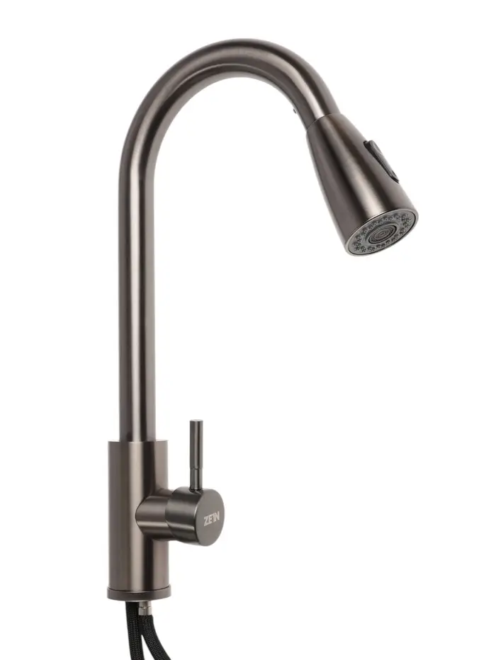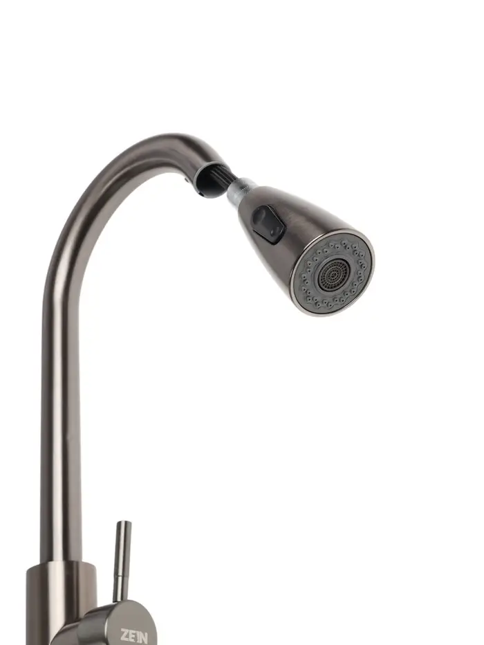 Смеситель для кухни ZEIN Z4961, нержавеющая сталь, с выдвижной лейкой, 2 режима, серый