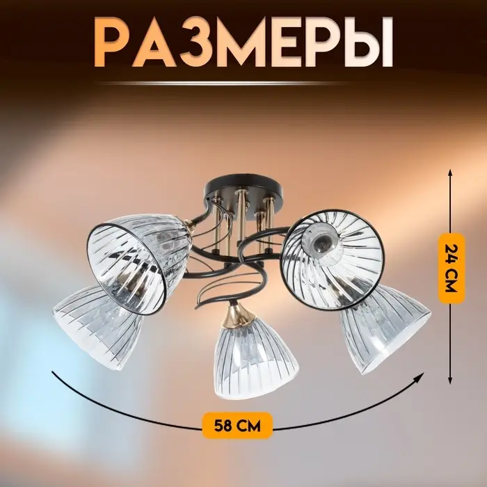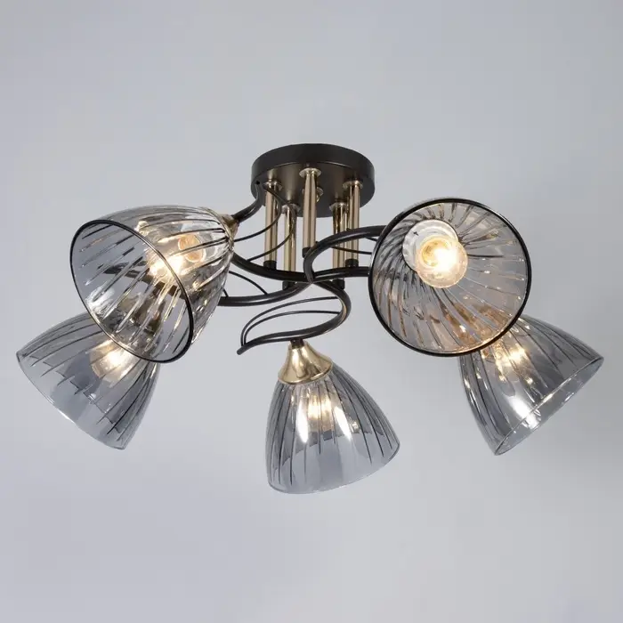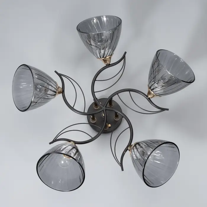 - Насыщенное освещение: Пять ламп формата E27 (до 40 Вт каждая) обеспечивают яркий, равномерный свет, достаточный для помещений площадью до 15 м². Подходит для гостиной, большой спальни или просторного зала.