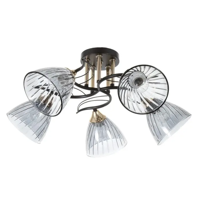 Свет, который заполняет пространство. Потолочная люстра с пятью рожками и чёрно-золотым металлическим основанием – это мощное световое решение для просторных комнат, где важны и функциональность, и выразительный дизайн.