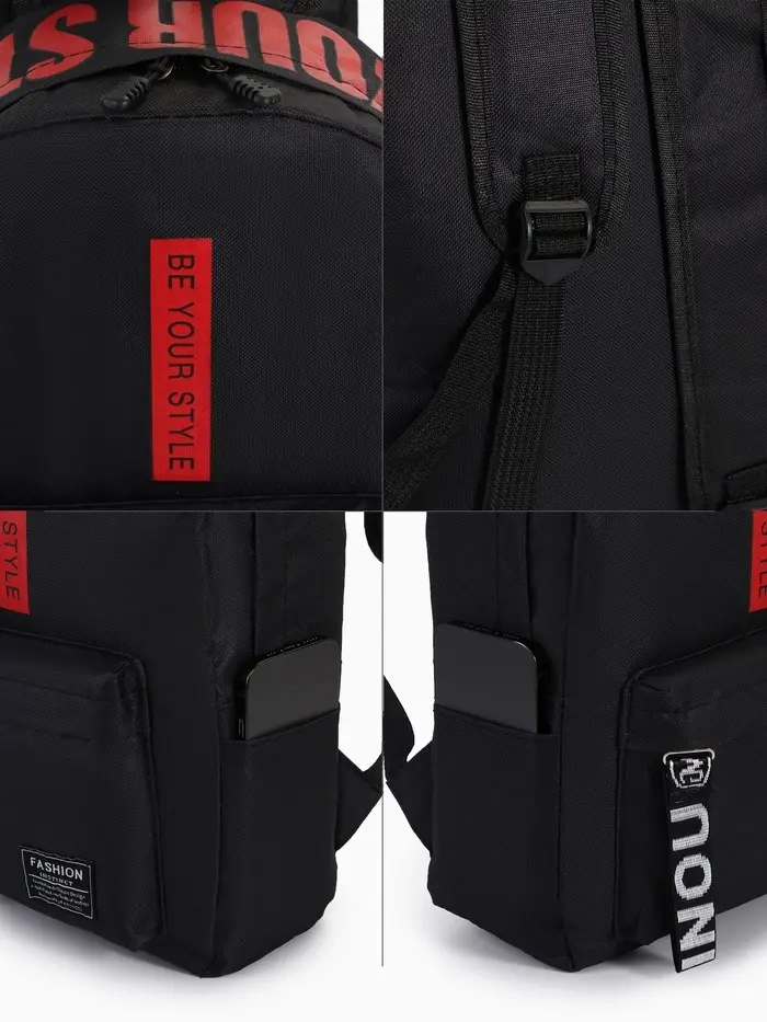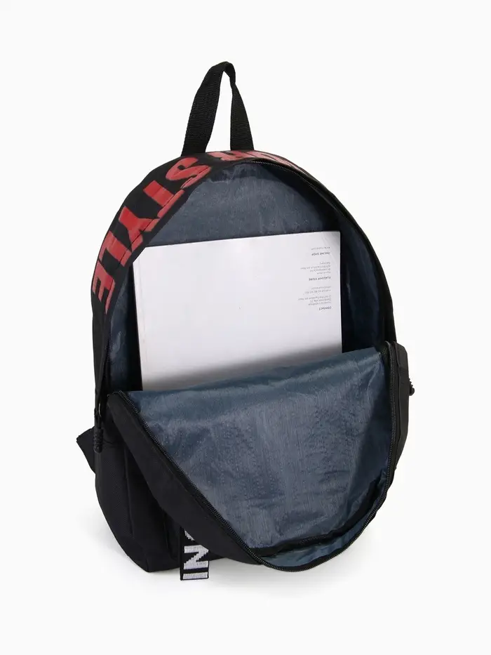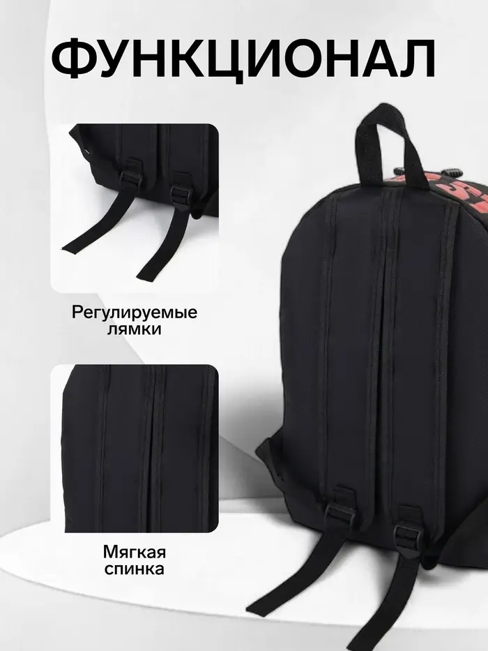 Рюкзак организует пространство: учебники и тетради не помнутся, а телефон и ключи всегда будут под рукой в наружных карманах. Его лаконичный чёрный цвет и динамичный принт подходят под любой casual-образ. Это практичный выбор для тех, кто ценит лёгкость, порядок и самовыражение в деталях.