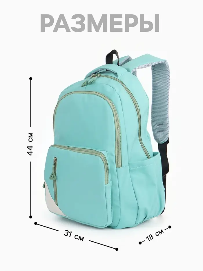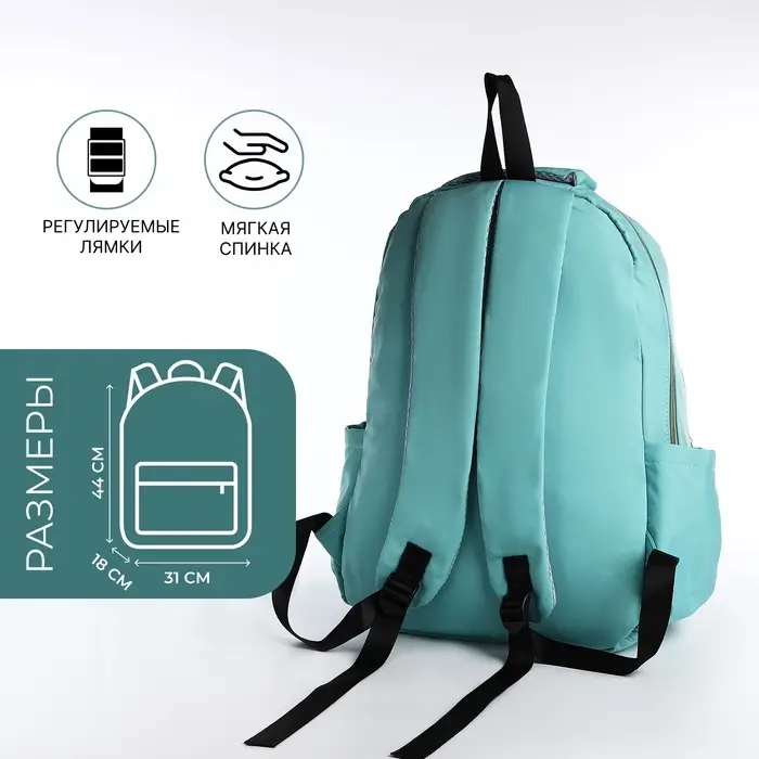 Рюкзак школьный на молнии, с отделами, карманами, размер 31×18×44 см, бирюзовый