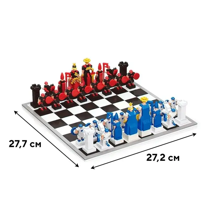 - Совместимость с популярными конструкторами: Детали набора полностью подходят к элементам других известных брендов, что дает возможность расширять и персонализировать ваш шахматный комплект.
