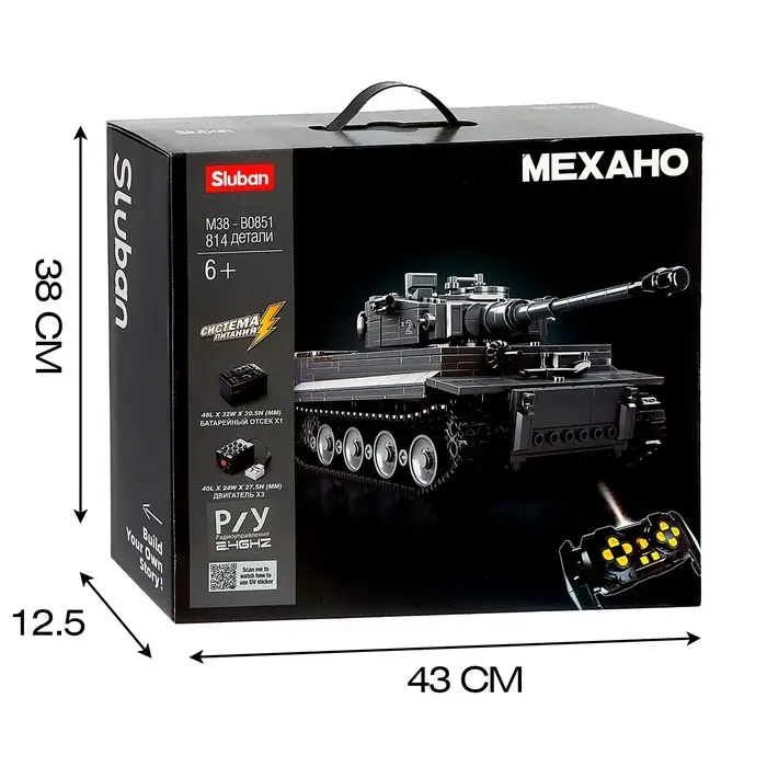 Конструктор Механо Sluban «Немецкий танк TIGER», радиоуправление, 814 деталей