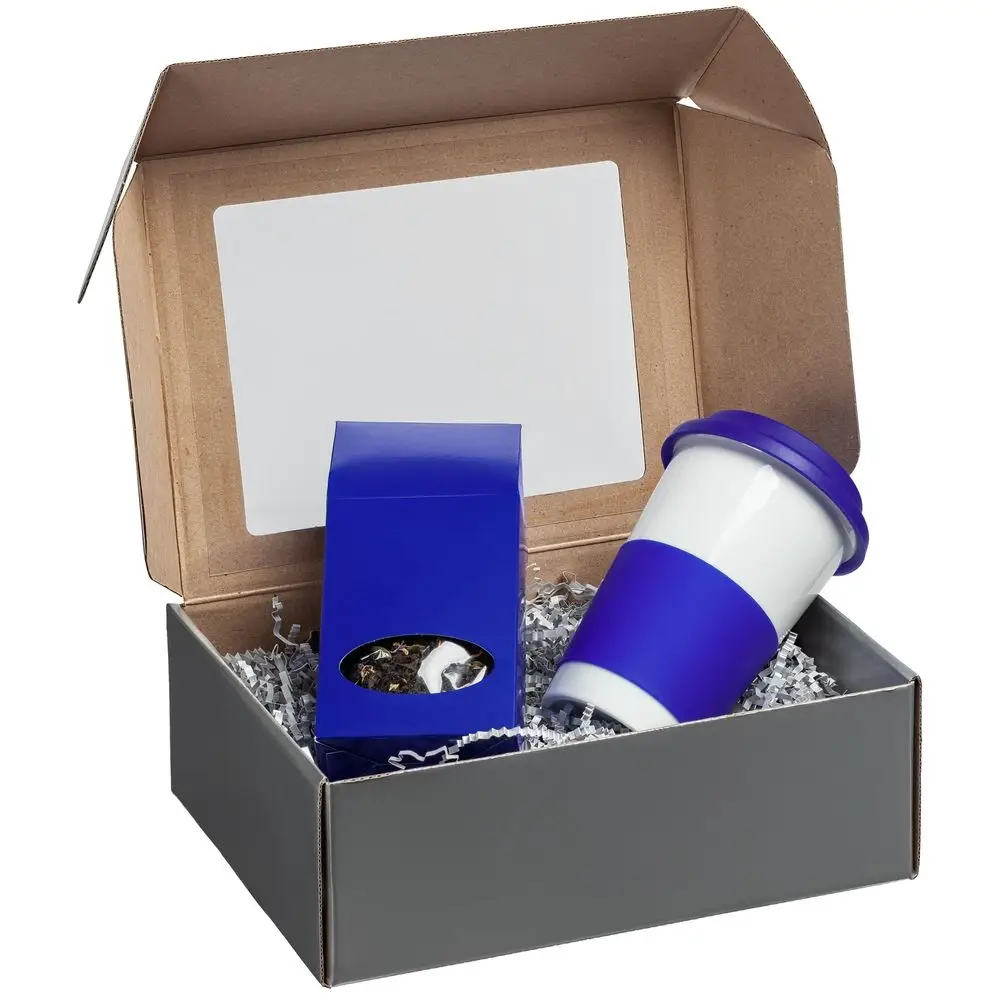 Коробка Silk с ложементом под ежедневник и ручку, ver. 2, синяя