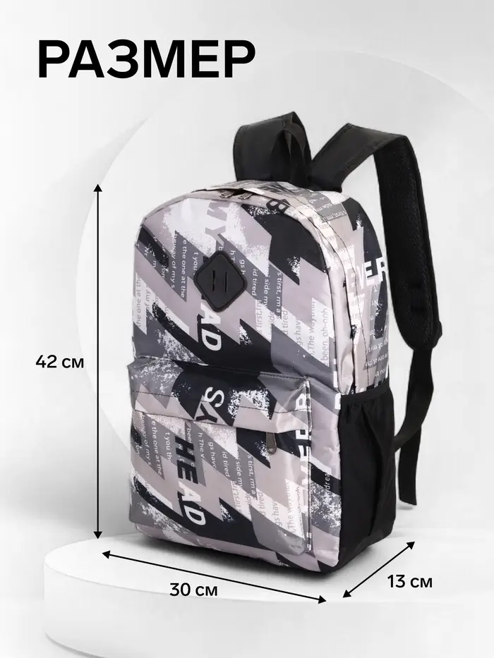 Рюкзак школьный на молнии, с карманами, с абстрактным принтом, размер 30×13×42 см, серый