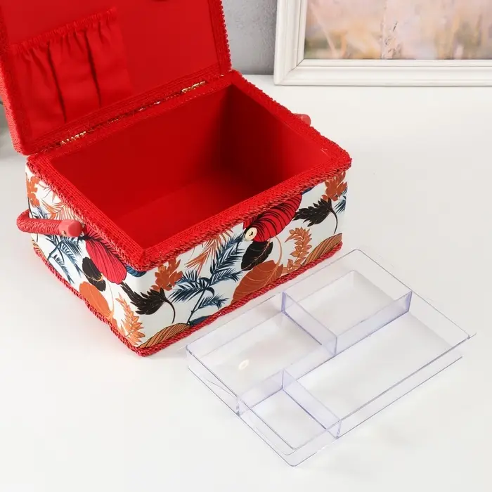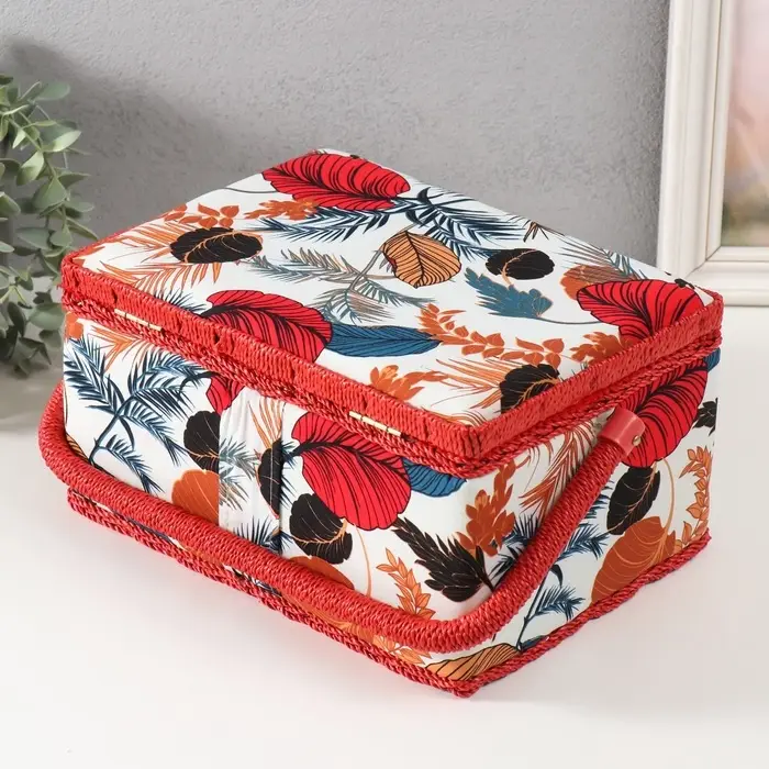 Шкатулка для рукоделия и шитья «Тропические листья», хранение ниток, иголок, мелочи, 19×26×14.5 см