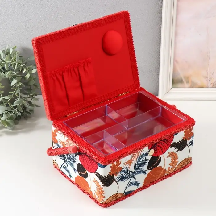 - Многоуровневая система хранения: Внутри вы найдёте не просто отсеки, а продуманное пространство. Передвижные перегородки помогают настроить размер ячеек под мотки ниток, катушки, наборы игл или ножницы. Больше не нужно искать мелкую фурнитуру — всё организовано и находится на виду.