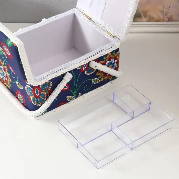 - Компактность и вместимость: При размерах 26×19×14,5 см органайзер помещается на полке или столе. Внутреннее пространство организовано так, что даже в маленьких отделениях находится место для булавок, напёрстков и ножниц.