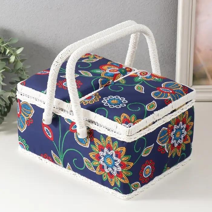 - Универсальное применение: Система подходит для хранения материалов вышивки, пэчворка, вязания. Корзинка становится мобильной рабочей станцией — её переносят в другую комнату или берут на творческие встречи.