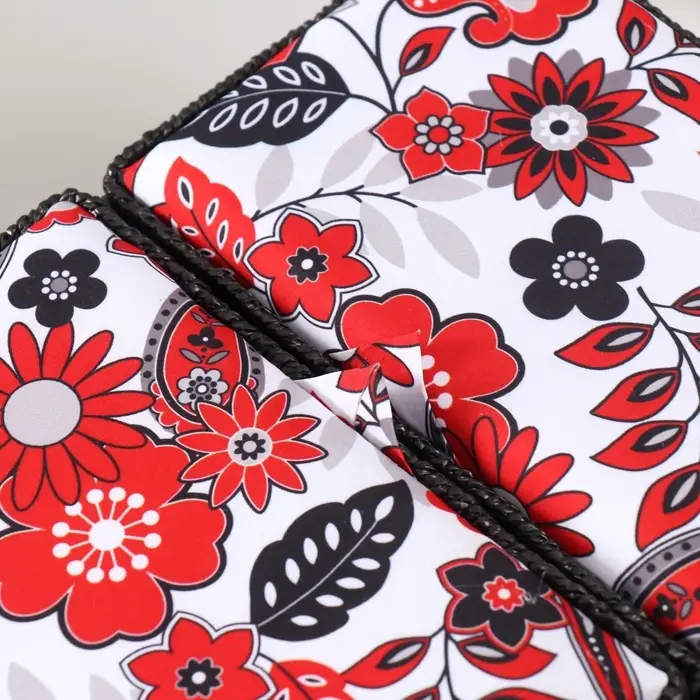 - Яркий народный цветочный узор в бело-красных тонах создаёт вдохновляющую атмосферу для творчества.