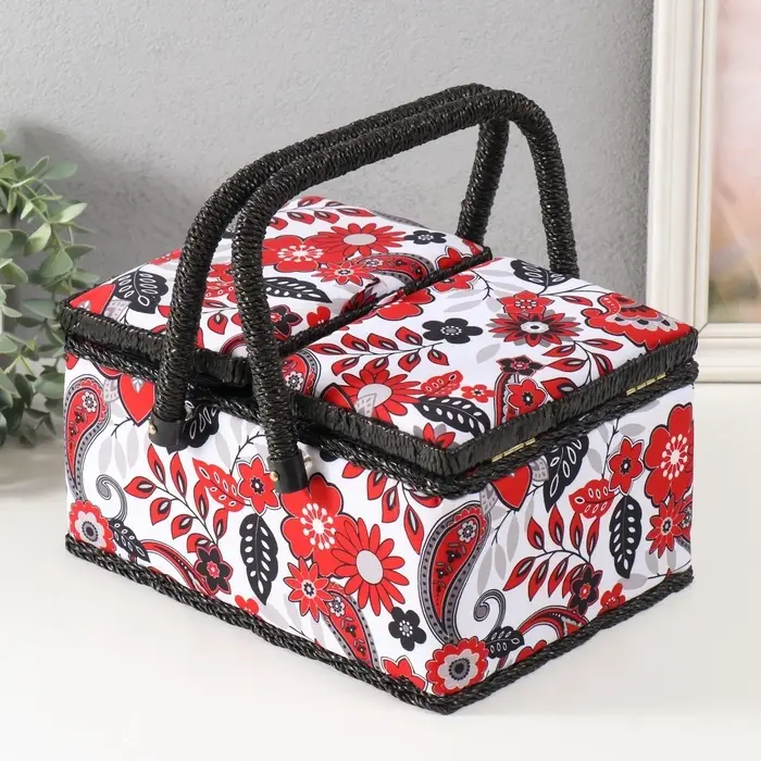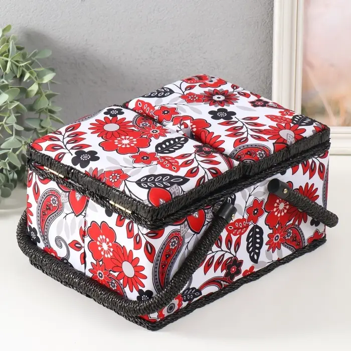 Шкатулка для рукоделия и шитья «Народный цветочный узор», хранение ниток, иголок, мелочи, 19×26×14.5 см