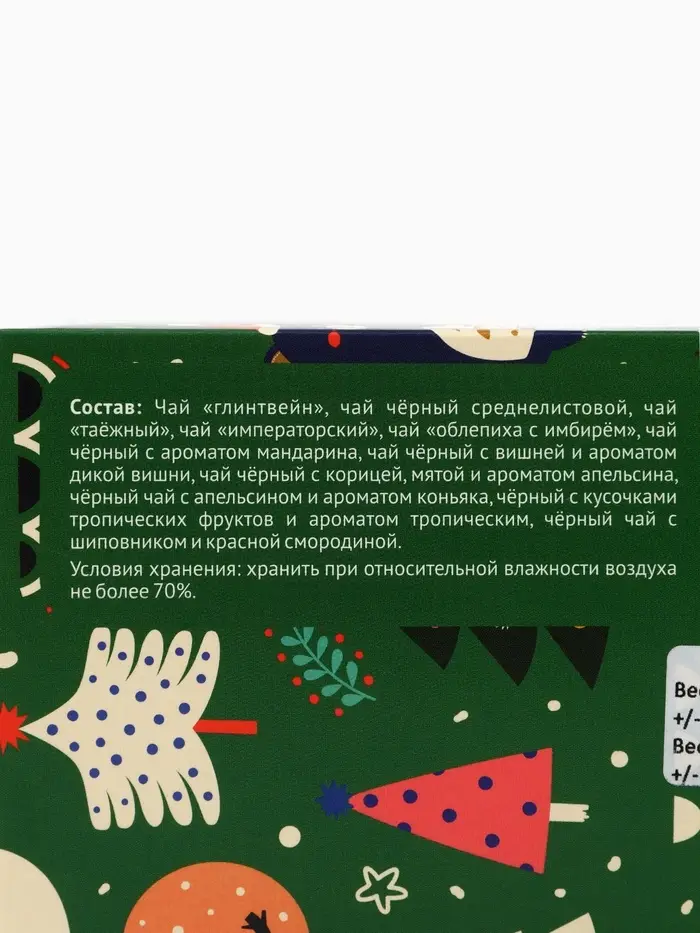 Чайный адвент-календарь "Счастливого рождества" - это идеальный подарок на новогодние праздники. С помощью такого необычного календаря можно радовать себя 12 разными вкусами чая. Разместите сувенир на видном месте, например, на кухне или в гостиной, и каждый день вскрывайте по одной ячейке и наслаждайтесь потрясающим вкусом чая.