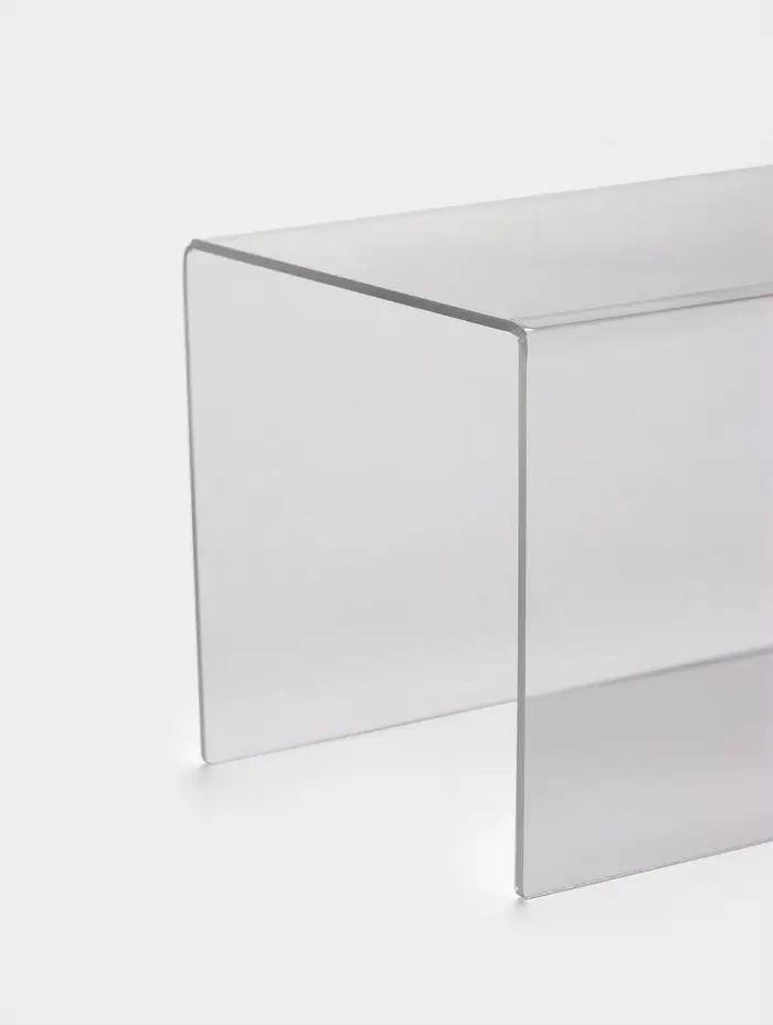 Создавайте стильный декор интерьера легко и изящно благодаря прозрачной подставке из прочного и элегантного оргстекла толщиной всего 2 мм. Её размеры 40 × 10,5 × 10 см делают её идеальной для размещения небольших предметов декора, сувениров или аксессуаров, подчеркивая их красоту и уникальность.