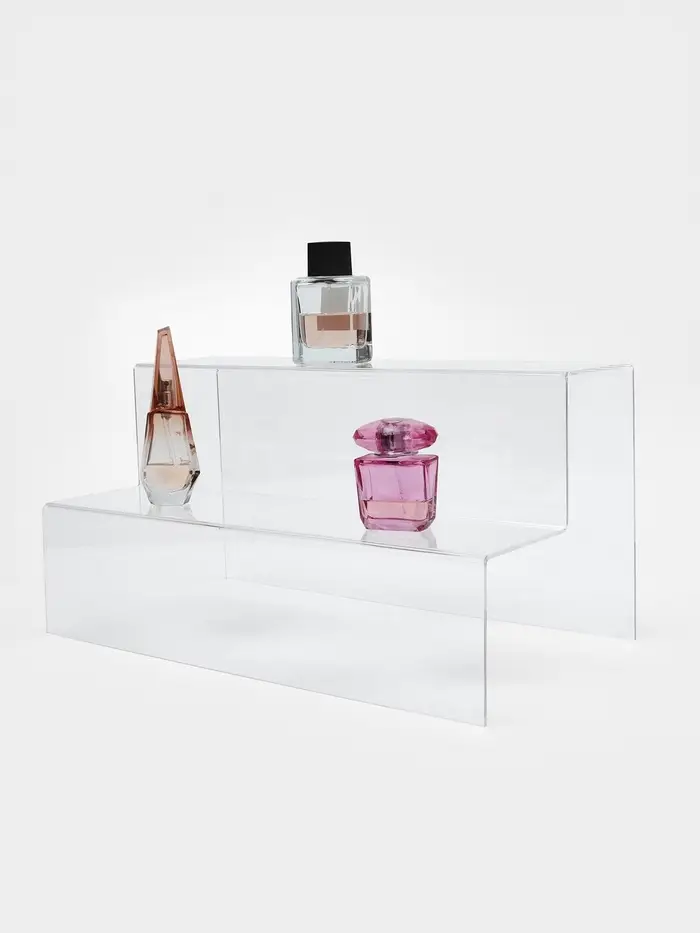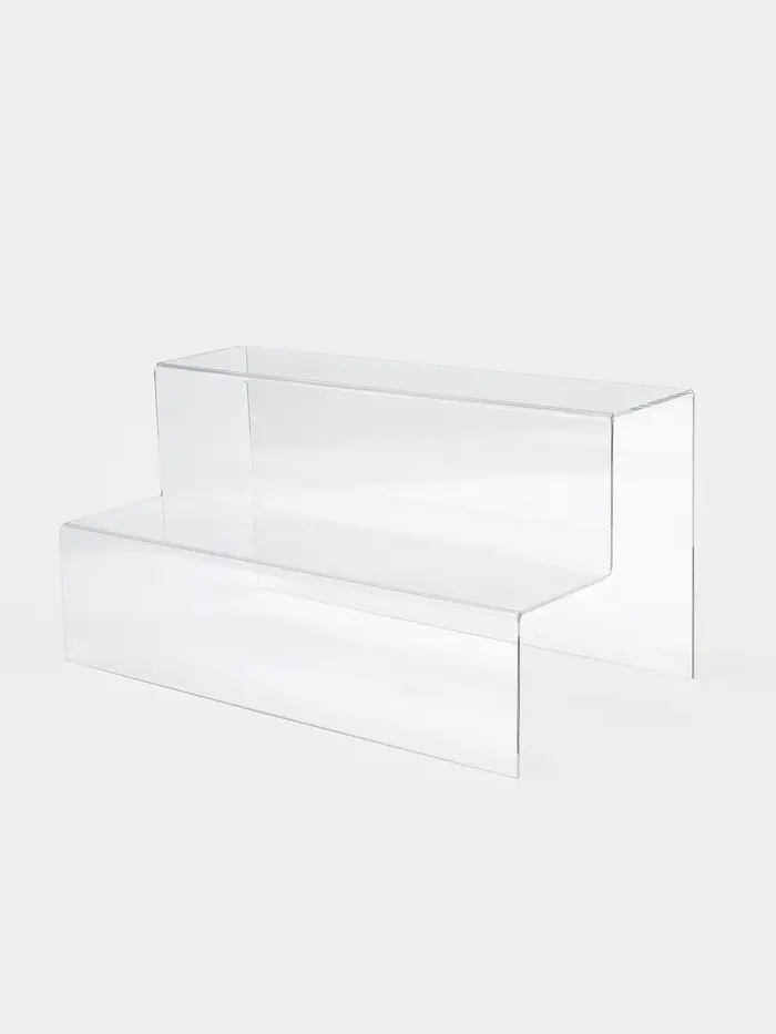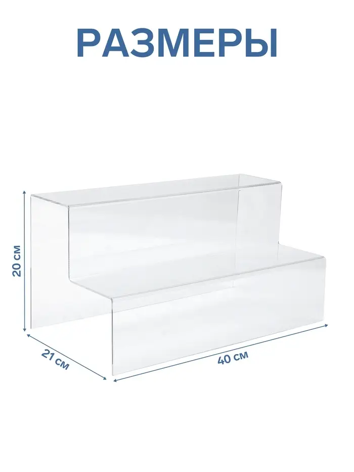 Простая и стильная горка с двумя ступеньками создаёт удобное расположение товаров для демонстрации. Размеры 40×21×20 см подходят для размещения товаров разного размера и формы. Подставки из оргстекла (листовой акрил). Благодаря использованию 100% акрила, подставки имеют идеальную прозрачность, высочайший блеск и шикарный внешний вид. ВНИМАНИЕ: Изделия поставляются в матовой защитной плёнке, белого, синего, зелёного или прозрачного цвета, которую необходимо удалить перед оценкой качества или перед использованием.