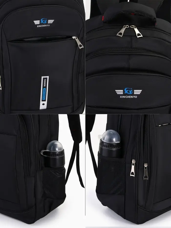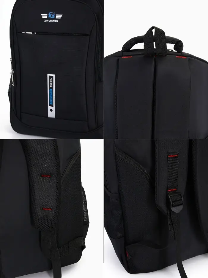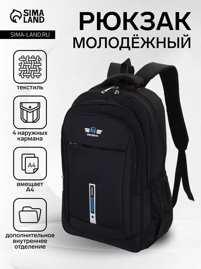 Рюкзак молодёжный на молниях, 2 отдела на молнии, 4 кармана, 37×17×54 см, чёрный