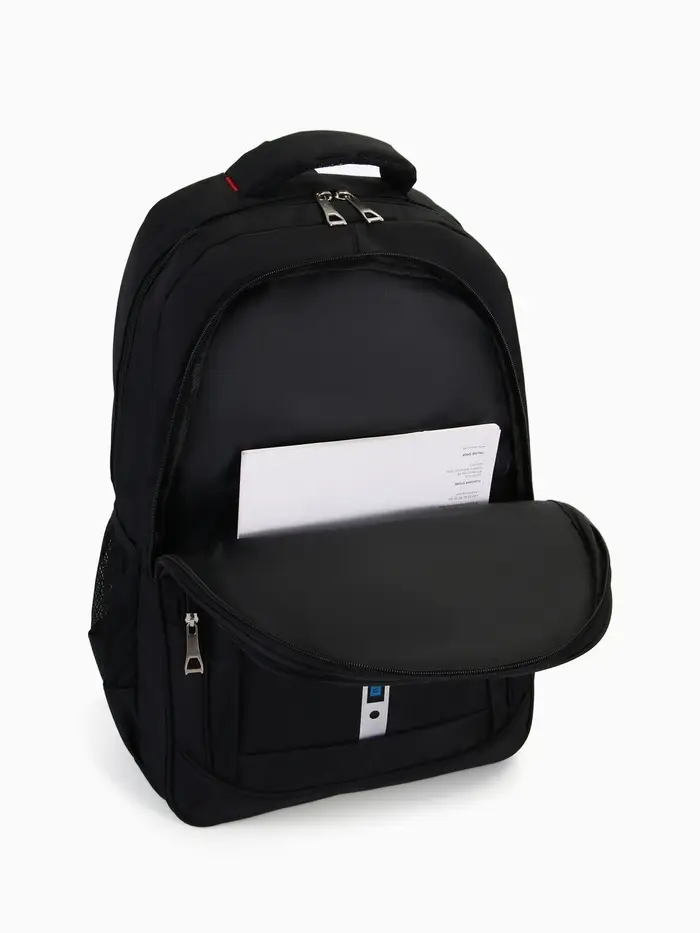 Рюкзак школьный на молнии, 4 кармана, размер 29.5×12.5×43 см, чёрный