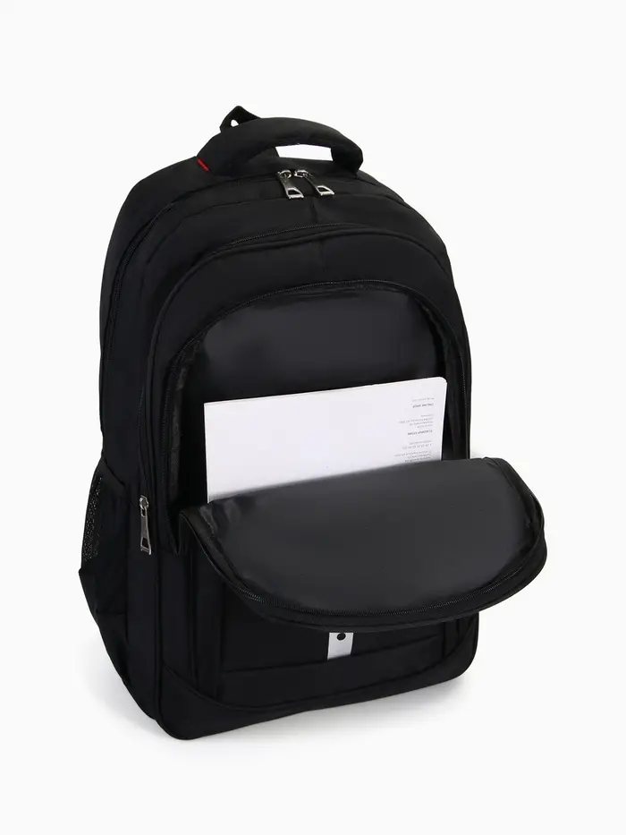 Рюкзак школьный, 4 кармана, 35×18×50 см, чёрный