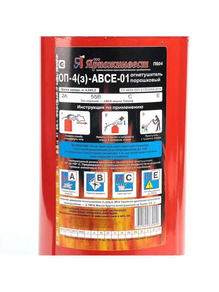 Огнетушитель порошковый «Ярпожинвест» ОП-4(3), ABCE-01(А)