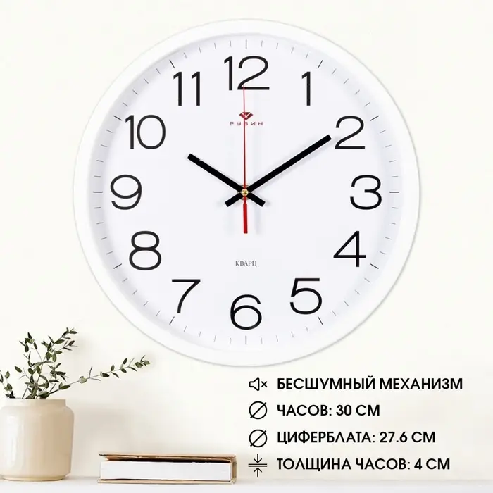 Часы настенные, интерьерные «Рубин», 30 см, белые